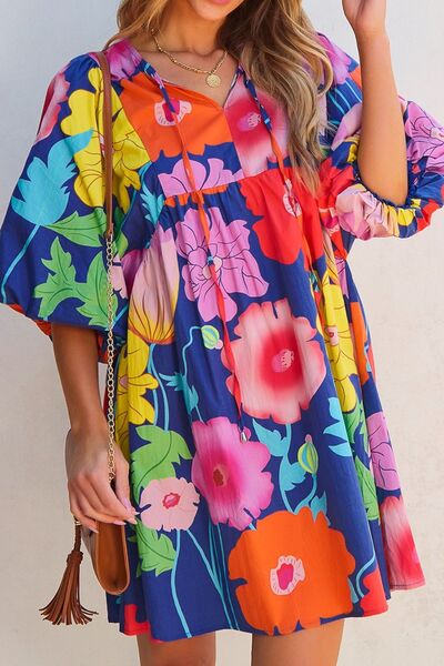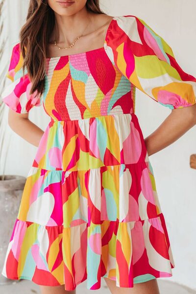 Aemi + Co Notched Balloon Sleeve Tiered Mini Dress