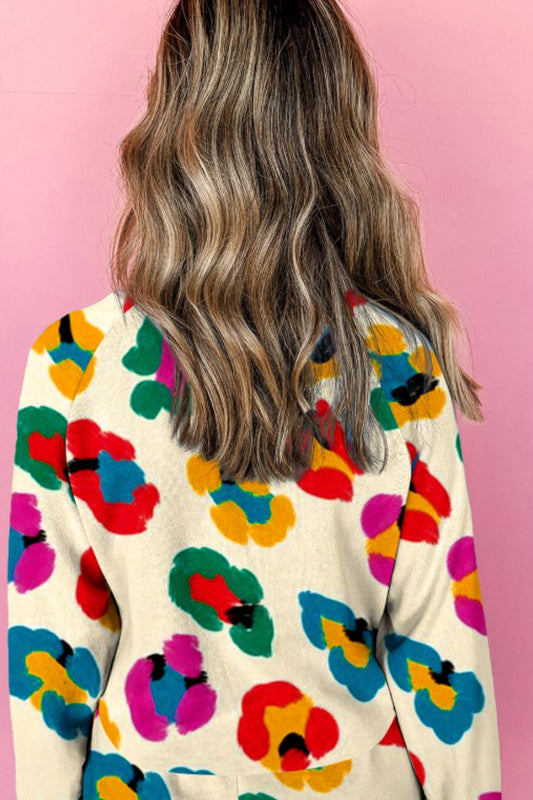 Leopard Round Neck Long Sleeve Top and Drawstring Shorts Set
